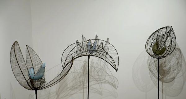 The winner of the 2022 Peoples Choice was David Douglas with his installation titled "Flipping the Bird", 2022, mixed media, (watercolour/graphite). Rachel Charyk with "Reflections 3", oil on canvas. was 2nd and in 3rd Place was Renee Woltz with "It ISna't Just Black and White", ceramic.